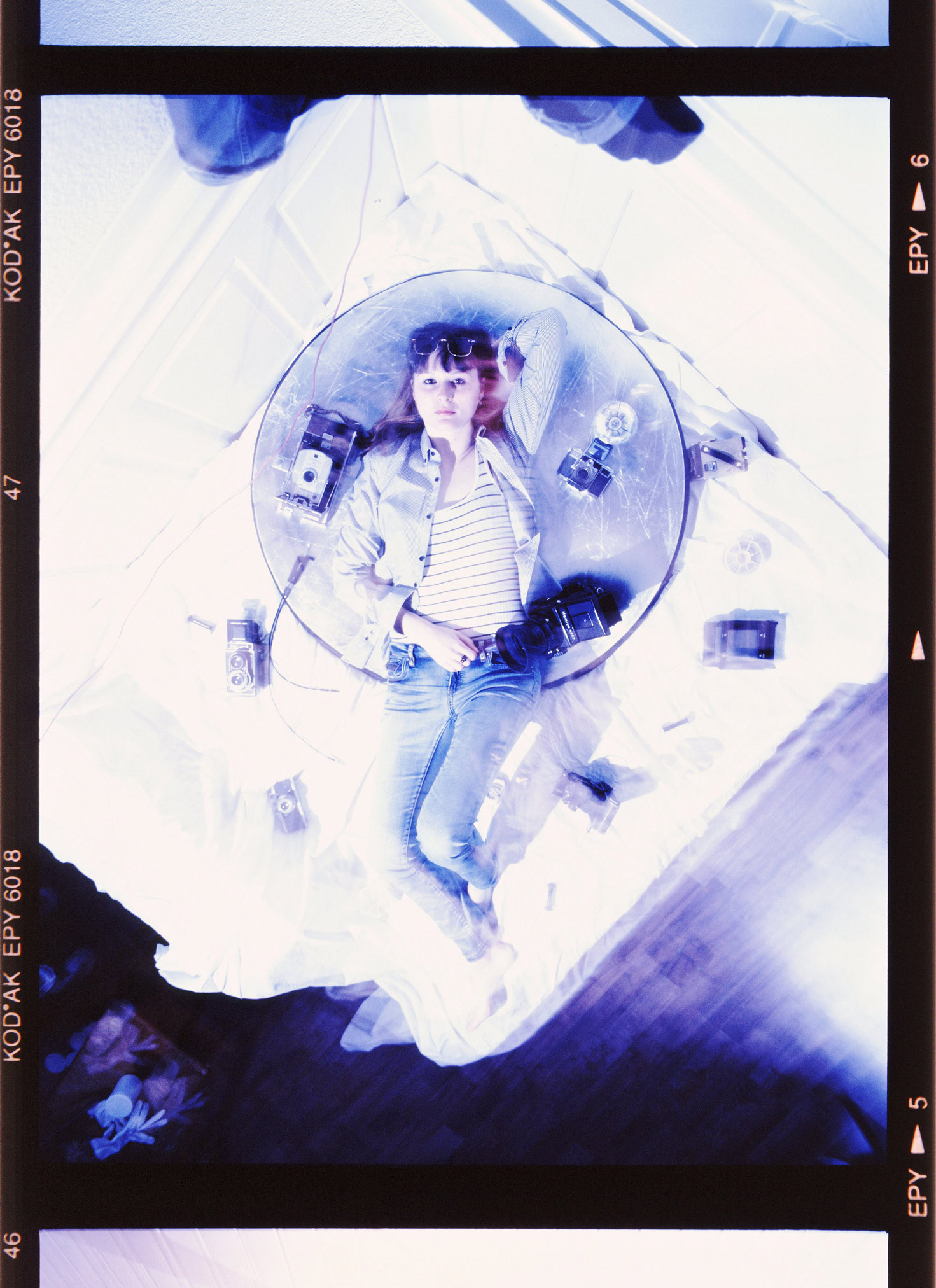 Analog film using Pentax 67 and cross processing film development.